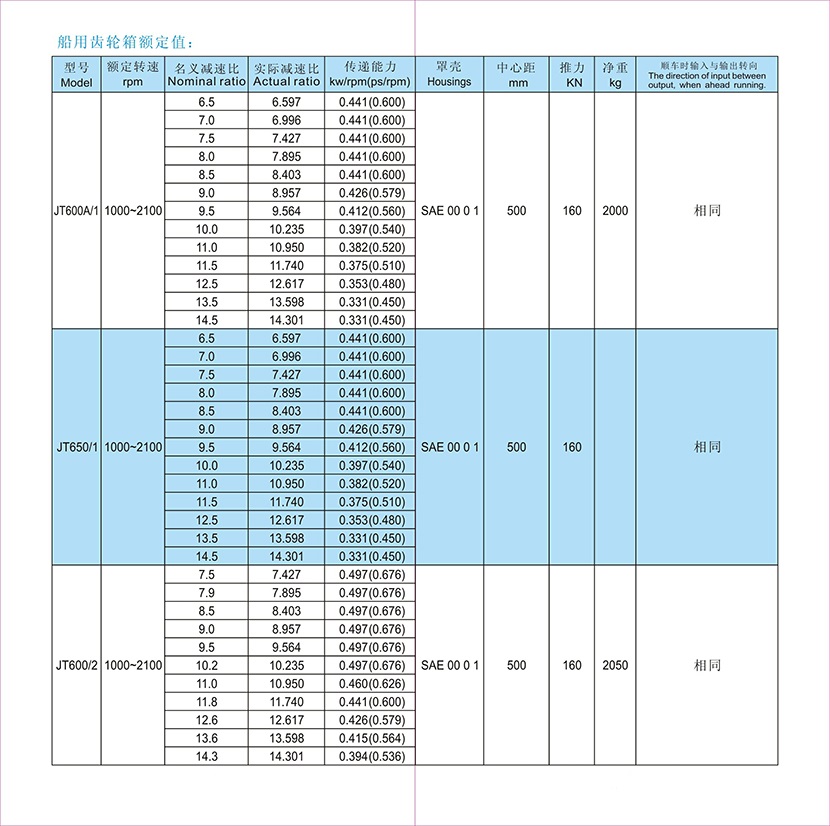 | 前進(jìn)名義減速比: | 8.5 | 輸入轉(zhuǎn)速: | 1000-2100rpm |