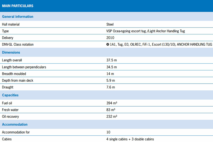 | 淡水: | 83m3 | 燃油容量: | 394m3 |