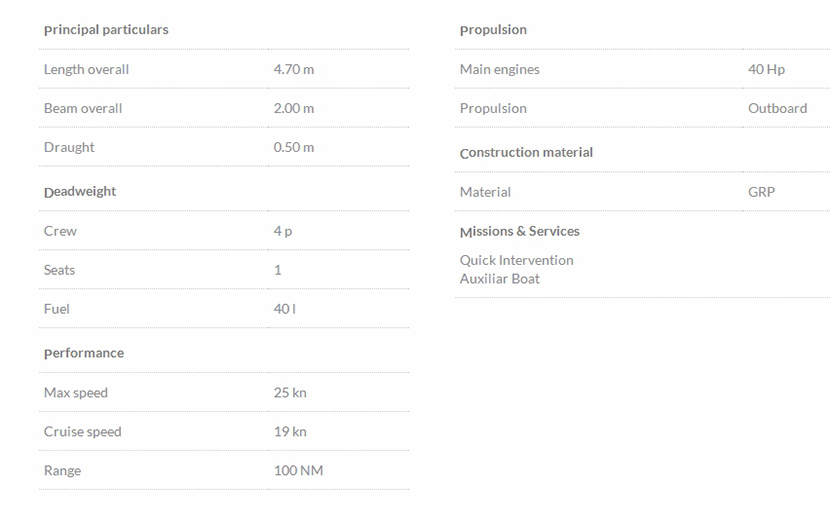 | 總長: | 4.70m | 航速: | 25kn |