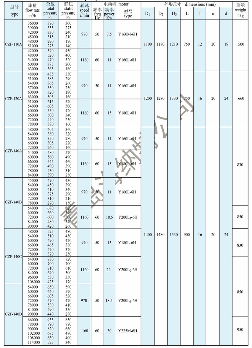 | 全壓: | 390Pa | 電機功率: | 15kW |