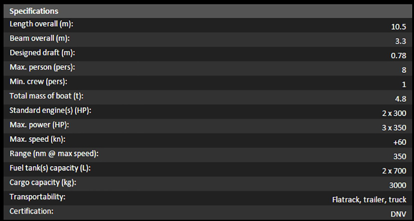 | 總長: | 10.5m | 航速: | 60kn |
