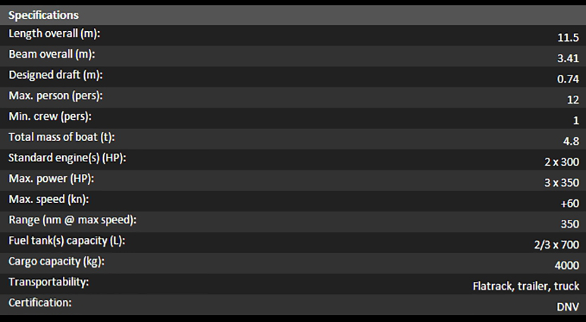 | 總長: | 11.5m | 航速: | 60kn |