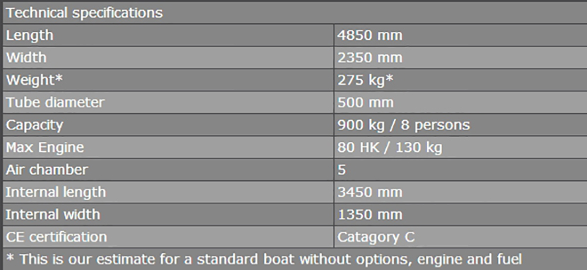 | 總長: | 4.85m | 最大乘員: | 8p |