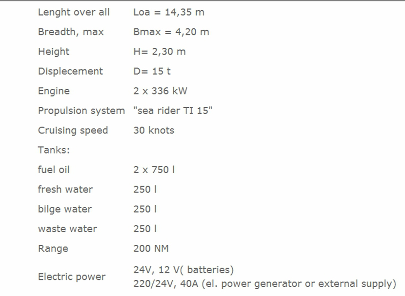 | 總長: | 14.35m | 航速: | 30kn |