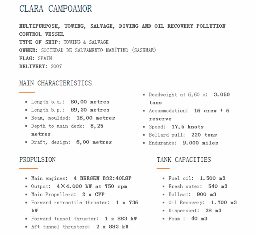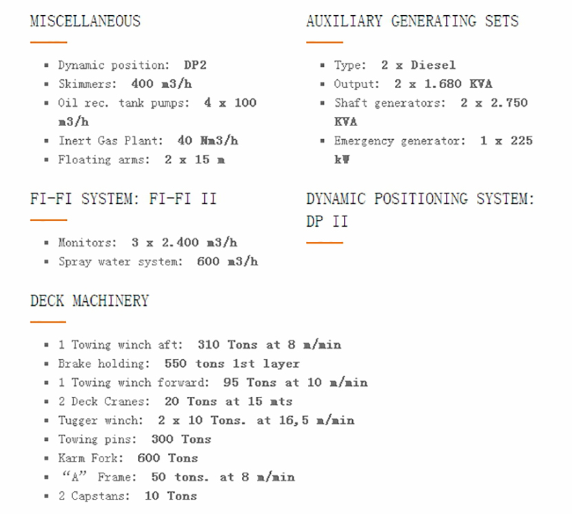 | 壓載體積: | 900m3 | 溢油回收: | 1.700m3 |