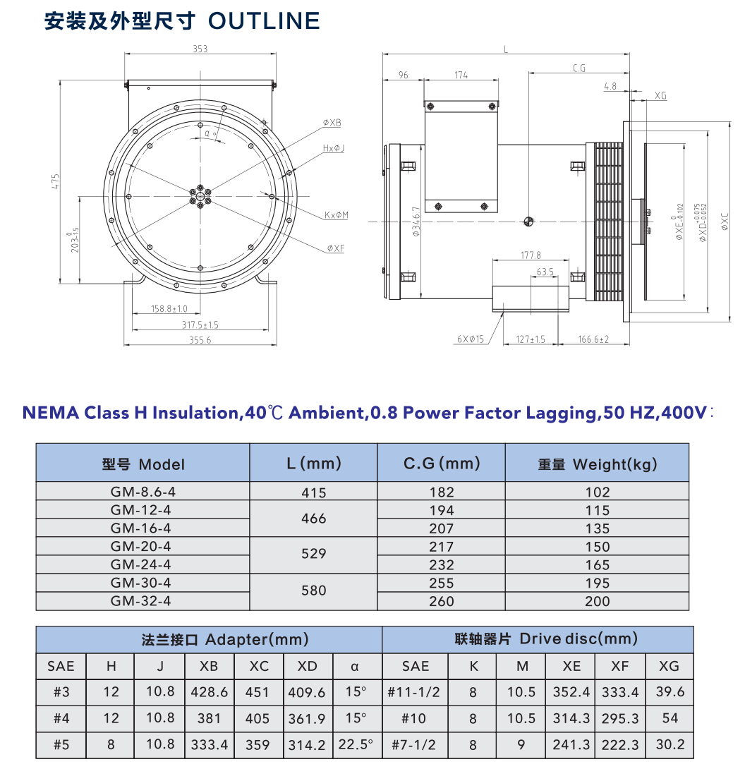 | GM280無刷同步交流發(fā)電機(jī)50HZ | |||