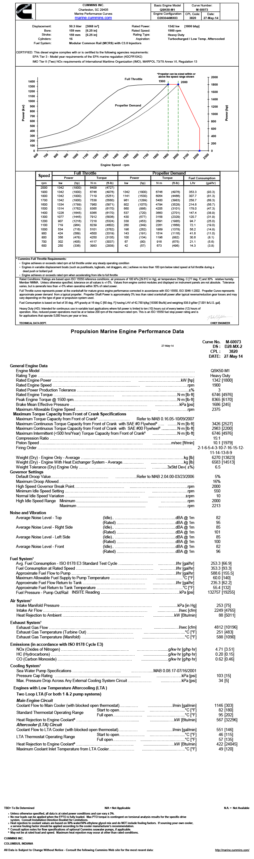 EPA Tier 3-Model year requirements of the EPA marine regulation(40CFR1042);IMO Tier II(Two)NOx requirements of International Maritime Organization(IMO),MARPOL 73/78 Annex VI,Regulation 13 |