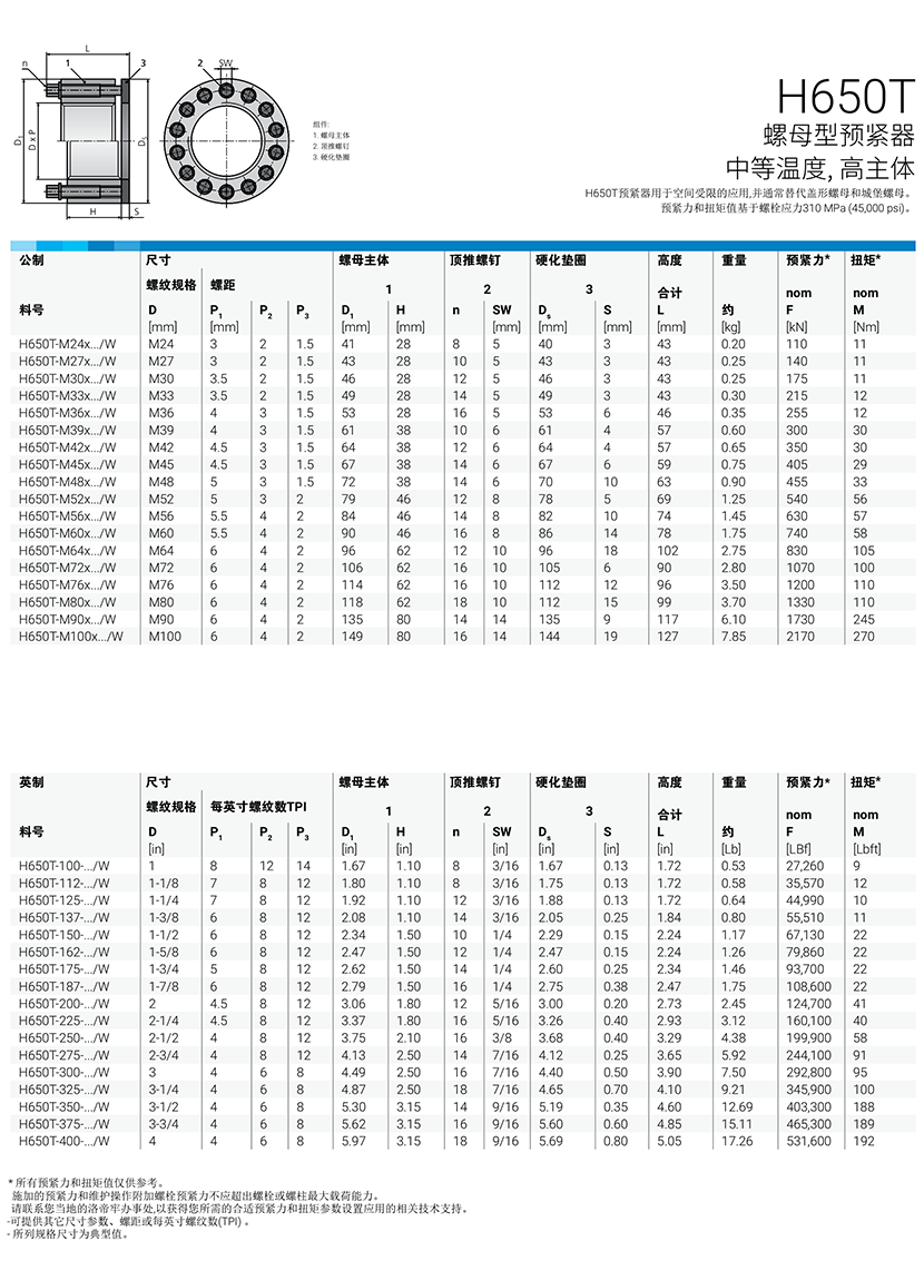 | 中等溫度,高主體螺母型預(yù)緊器 | |||