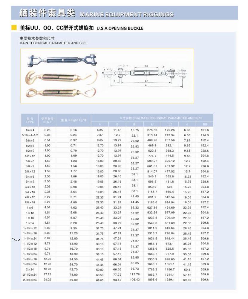 | 類型: | 美標UU、OO、CC型開式螺旋扣 | ||