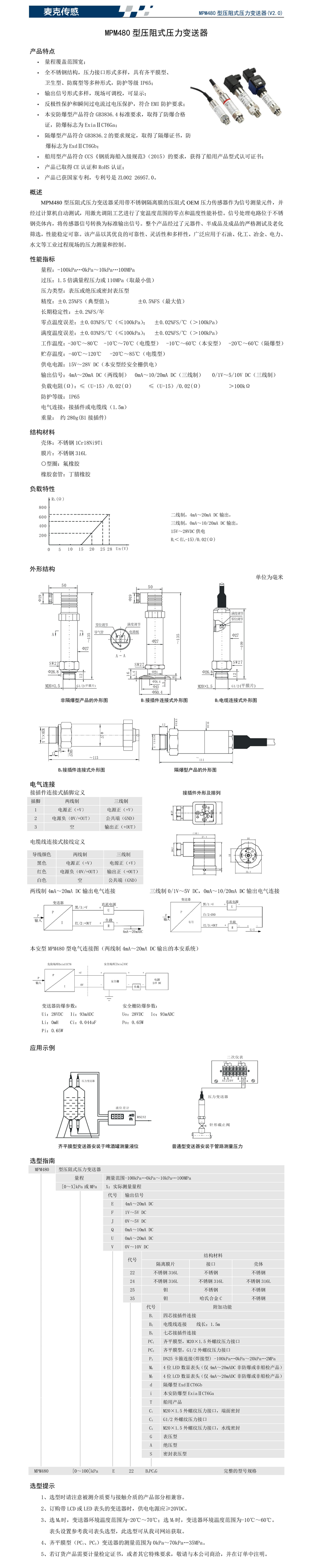 | MPM480型壓阻式壓力變送器 | |||